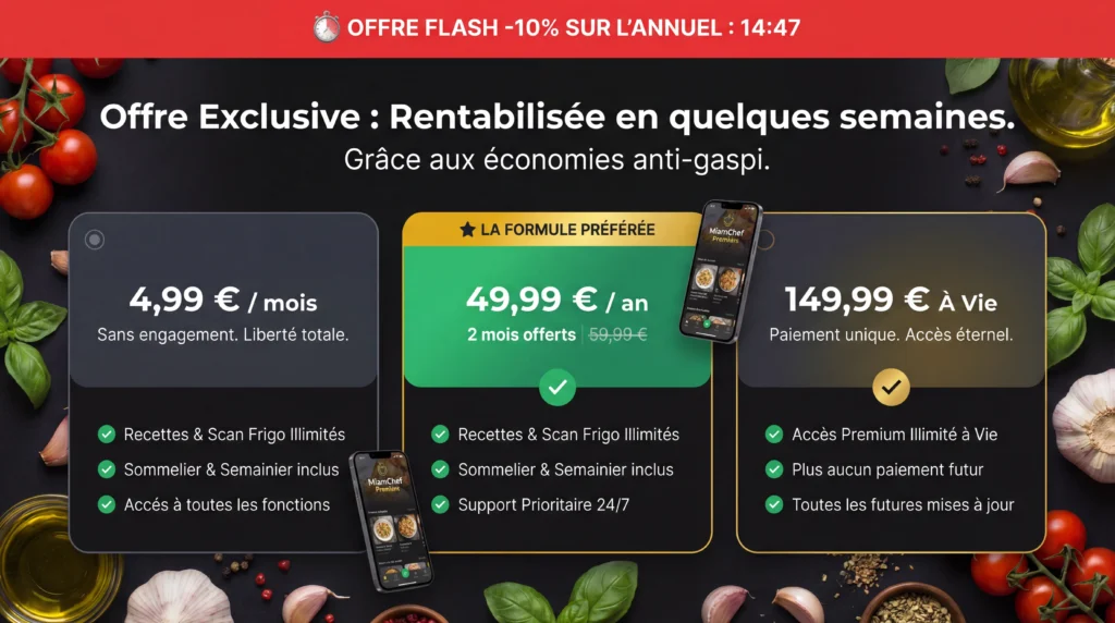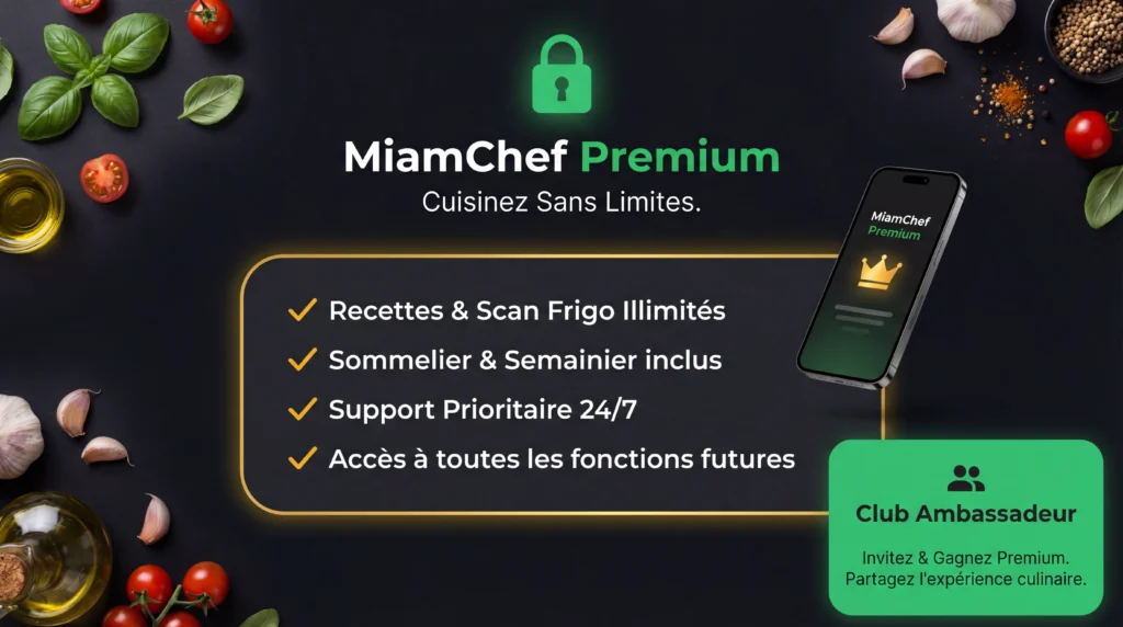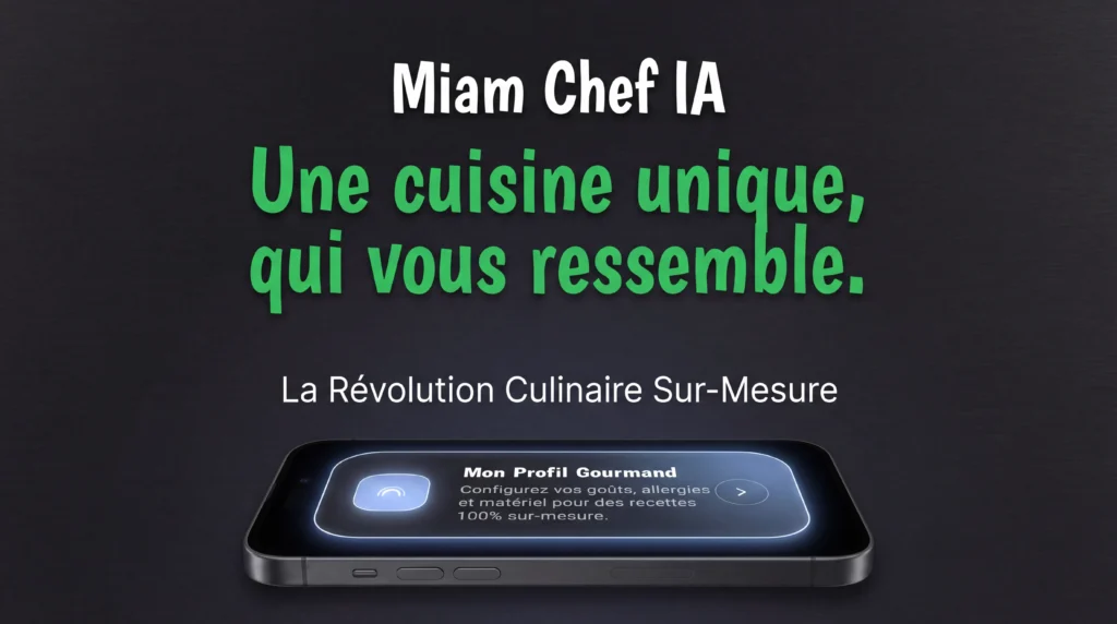 « Votre assistant culinaire intelligent qui crée instantanément des recettes sur mesure, en harmonie avec vos goûts, vos envies et vos traditions. » Abonnez vous à la MiamLetter Adresse e-mail: Laissez ce champ vide si vous êtes humain :