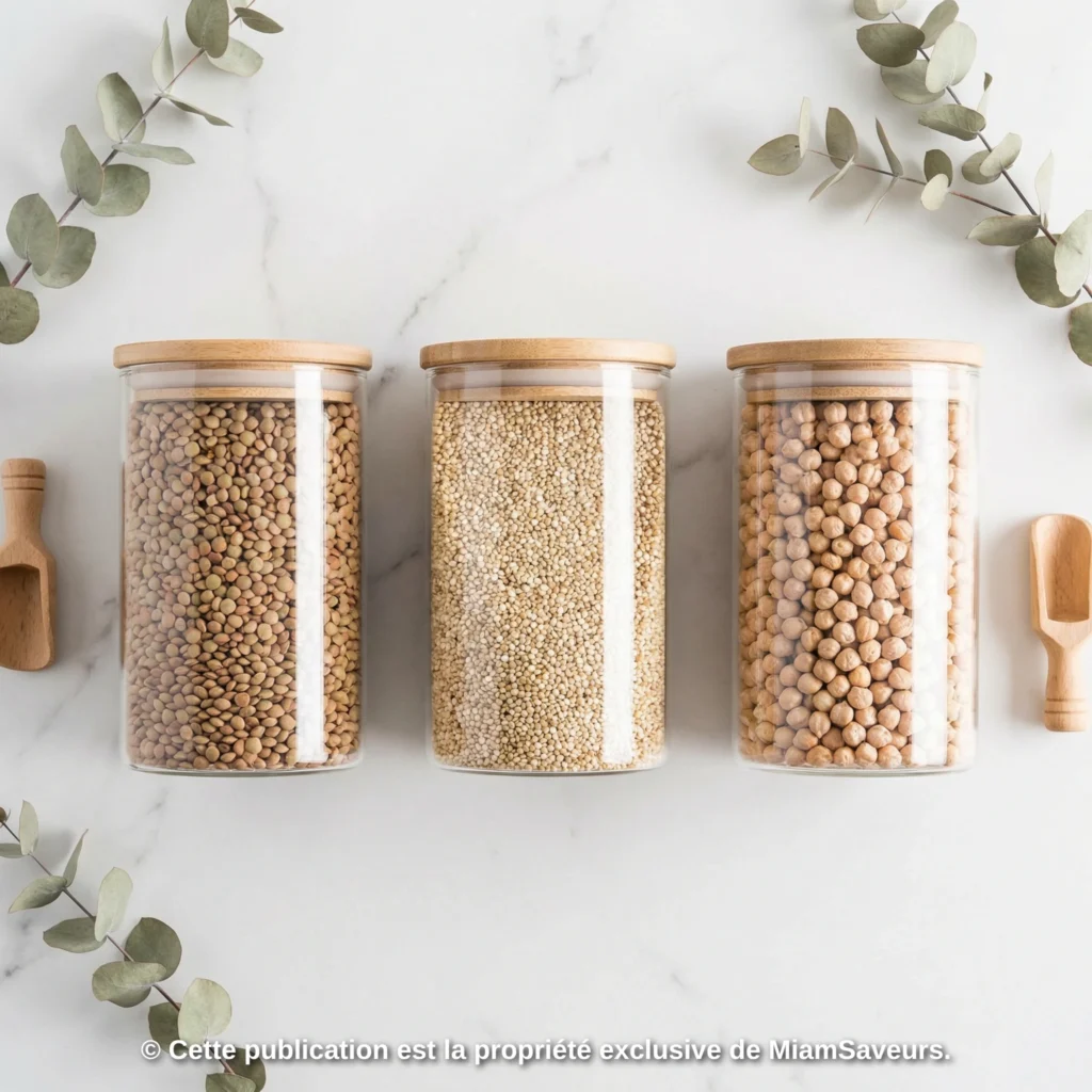 Le secret réside dans l’utilisation de bocaux en verre hermétiques, placés à l’abri de la lumière et de l’humidité. Pour ma part, j’ajoute toujours une petite étiquette avec la date d’achat et j’utilise mon Carnet MiamChef pour suivre mes stocks et éviter les doublons.